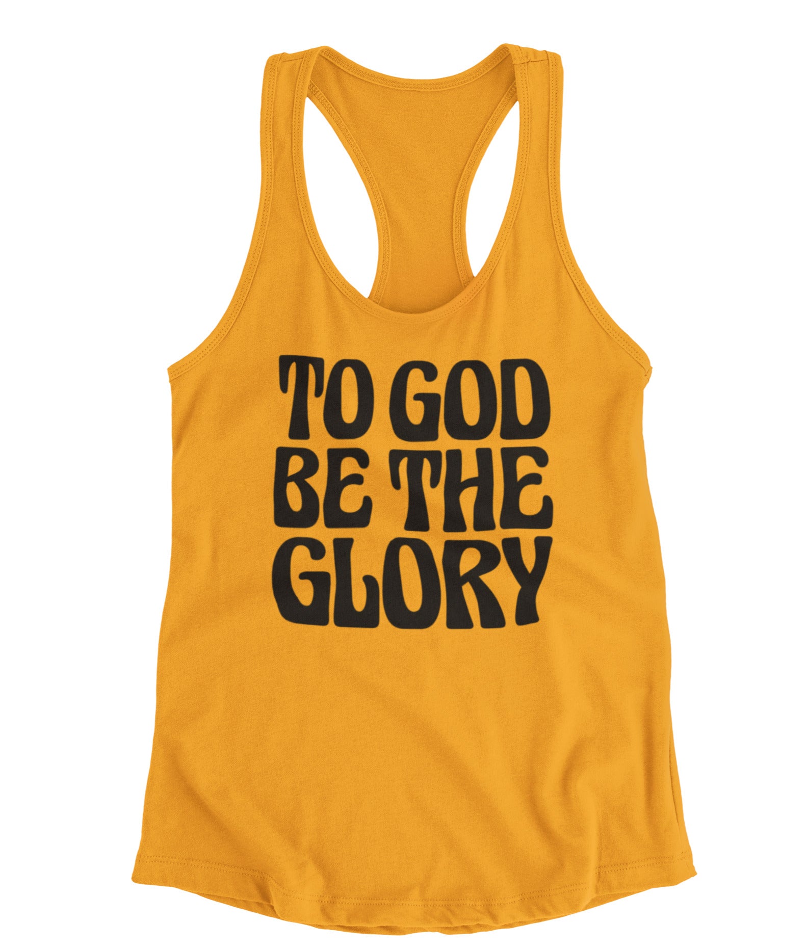 To God Be The Glory in black text racerback tanktop.